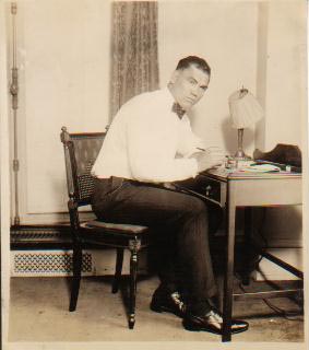A very young Jack Dempsey, who appears to be in his early twenties, is seated at a desk writing a letter... A nice clear image!!