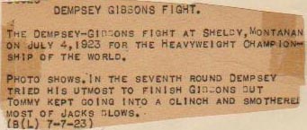 Jack Dempsey is trying to finish off Tommy Gibbons who is smothering Dempsy's punches by forcing a clinch... Round 7 action from their heavyweight championship fight which took place in Shelby, Montana on July 4, 1923