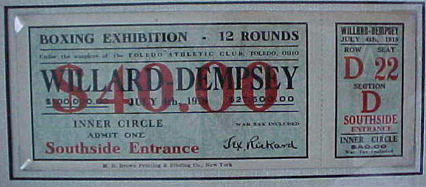 opening session... Dempsey would become heavyweight champ when a badly beaten Willard retired at the end of round three.