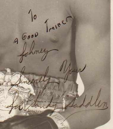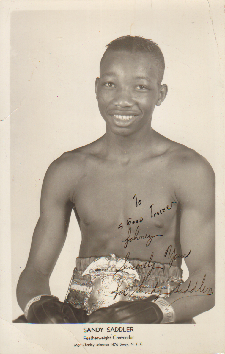 champion Sandy Saddler has nicely signed this vintage promotional photograph in
